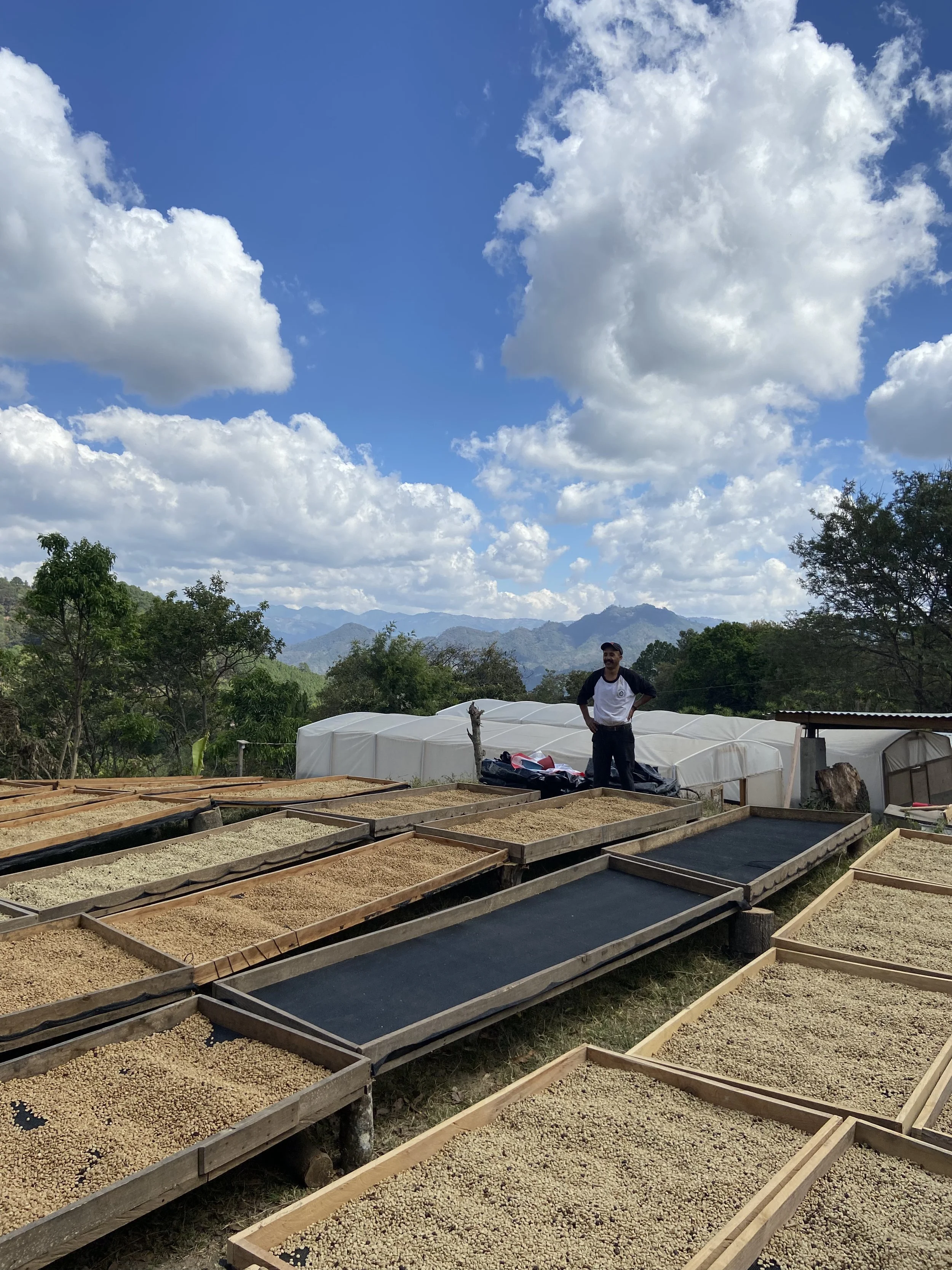 Armando manages a 1.4 hectare farm of about 6,000 coffee plants called El Matazano. Cherries are picked at peak ripeness and then moved to the communal beneficio in El Volcancito. Here, they are floated and the remaining cherries are stored in sealed plastic bags in shade for 48 hours. The cherries are then depulped and left to dry ferment, again in sealed plastic bags, for another 40 hours. Once rinsed, the coffee is dried on raised beds for 15-17 days. Parchment is stored in a dry warehouse, sealed in plastic bags until milling.
